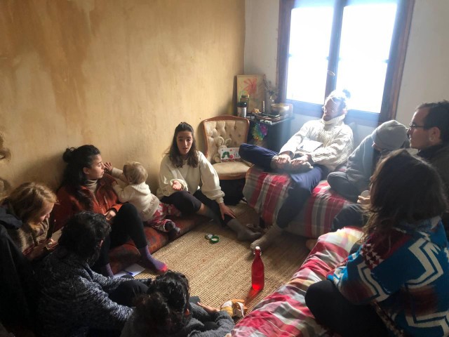 Nos encontramos todavía en una fase bastante inicial, este proyecto tiene dos añitos y medio y todavía está en una fase vulnerable. Estamos al comienzo del segundo año de alquiler con opción a compra, parte del grupo vive ya en el proyecto y otra parte todavía no ha llegado a instalarse allí, ya que tampoco existen posibilidades cómodas para pasar el invierno allí entre muchas personas.